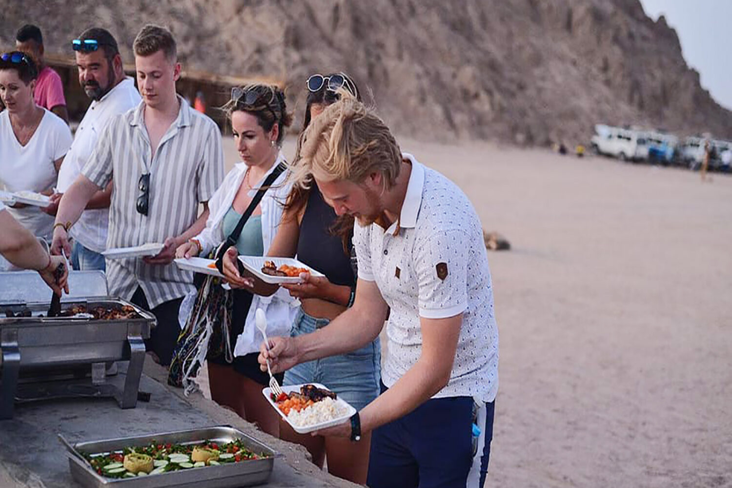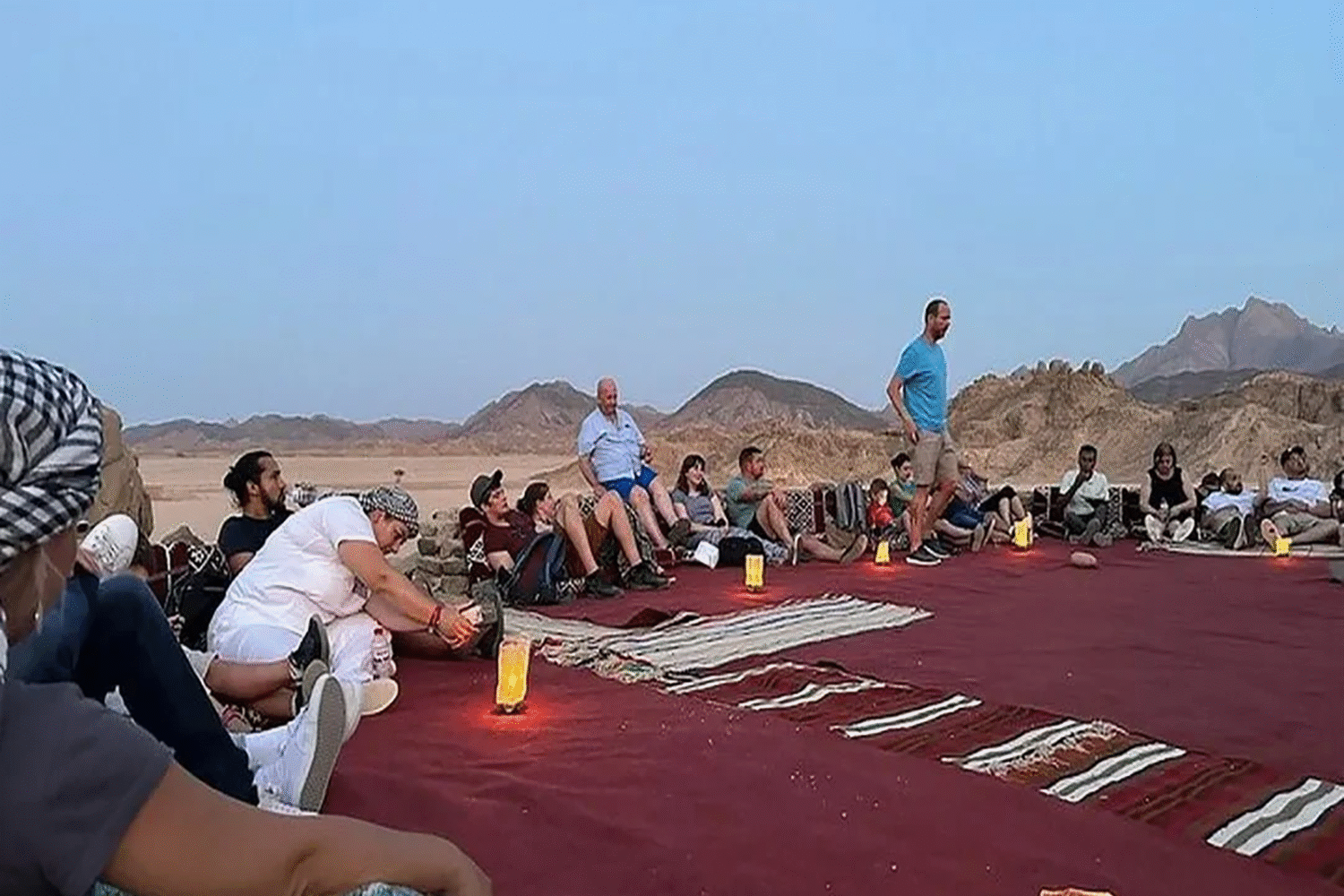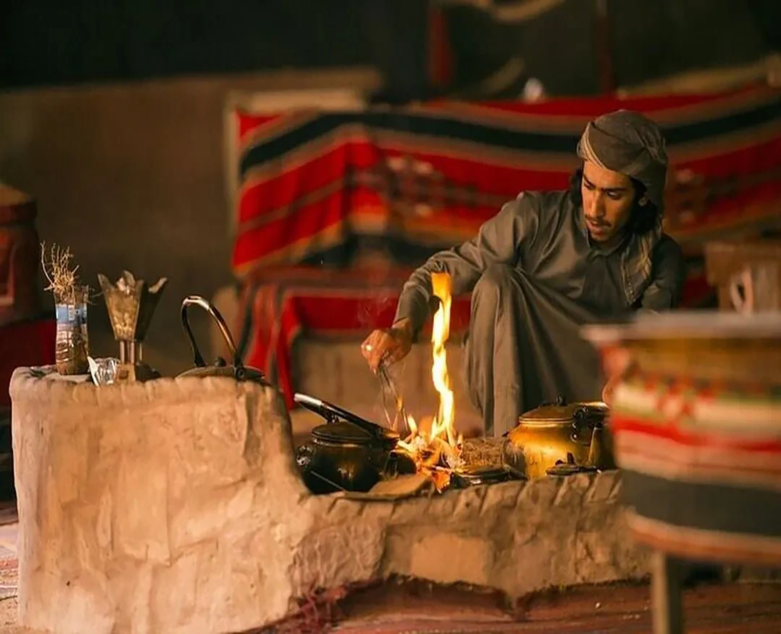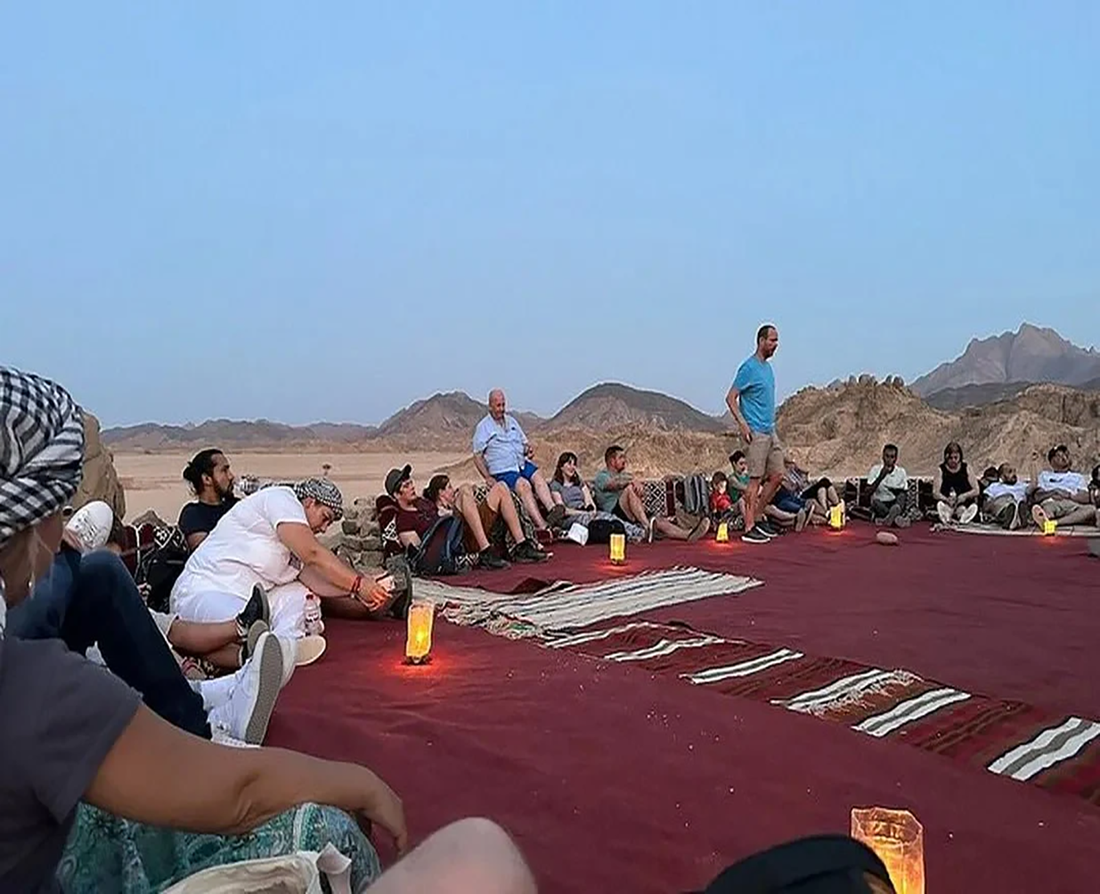 The romantic time will start with candlelight style in the dark desert while the Bedouin man is barbecuing delicious food.