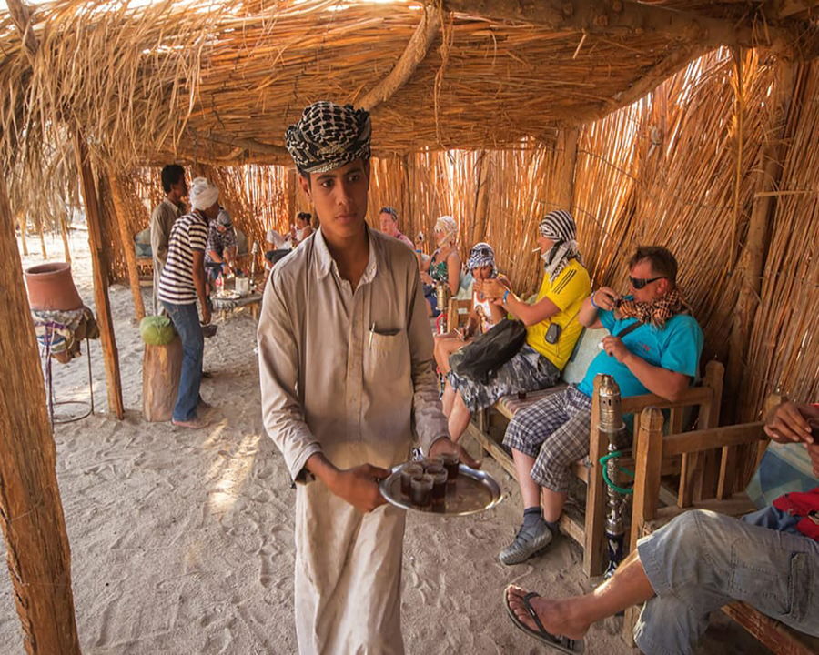 You will be welcomed with a drink upon your arrival. Listen to a briefing about the day activities. Get ready for the adventure by putting on a scarf and a face mask. Test your driving skills in a test area. Drive a quad bike for 40 minutes. Follow the guide’s instructions and drive in a line with spaces between each quad. 15-minute buggy driving experience. Go off-roading by jeep for 25 kilometers inside the desert. A traditional Bedouin tea upon your arrival. Go on a camel ride for 5 minutes. Visit a herbs pharmacy and learn about the uses of every herb and natural oil. Watch the Bedouin people make bread using simple materials. Quad biking experience back to starting point.