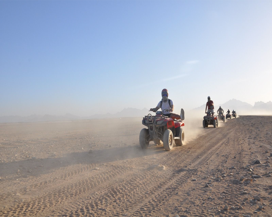 Get ready for the ultimate desert adventure! This action-packed safari takes you deep into the heart of the Hurghada desert, where you’ll ride across golden dunes on a powerful quad bike, experience the thrill of a dune buggy, and enjoy a traditional camel ride. Visit an authentic Bedouin village, sip refreshing Bedouin tea, and discover the rich traditions of Egypt’s desert tribes.
